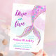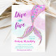 This adorable invitation features a colourful mermaid tail with faux gold glitter embellishments.