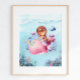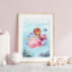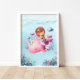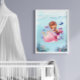 Add a touch of warmth and softness to your little one's nursery, bedroom, or playroom with this adorable mermaid riding on the back of a pink whale, their tails intertwined as they journey through the depths of the ocean, surrounded by colourful fish and vibrant coral reefs. This watercolor art will bring life to any room!