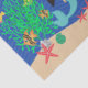 This beautiful birthday pool party tissue paper features a mermaid with dark hair in ponytails swimming in the ocean with her sea creature friends. Some graphics by AMBillustrations.