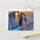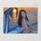 Postcard with a Beautiful Mermaid posing on the beach with a colourful sunset in the background.