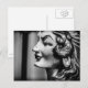 A postcard with a black and white photograph of a mermaid carousel seat.