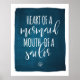 Some of us were meant to be mermaids. And some of us talk like sailors. A very few special people are a little of both. This navy blue poster is the perfect gift for the gal with a big heart and a big vocabulary.
