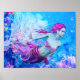 This design features A pink and blue themed mermaid underwater with bright blue tones of water and beautiful coral and ocean life .