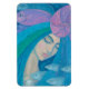 Artwork titled “The Pearl”. Beautiful mermaid princess with blue hair dreaming of something, blue, pink and violet fishes floating besides her. Blue, pink and mint colours.