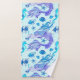 Beautiful, Weird, Purple and Turquoise Fairy Ocean Creature, this Mermaid is Swimmingm and looks like playing, surrounded by Starfishes, sea shells, seaweed, Fishes, and holding a little Seahorse on her hand; all the elements are assembled to compose a Fantasy Pattern. Vector Illustration Copyright BluedarkArt.