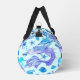 Beautiful, Weird, Purple and Turquoise Fairy Ocean Creature, this Mermaid is Swimmingm and looks like playing, surrounded by Starfishes, sea shells, seaweed, Fishes, and holding a little Seahorse on her hand; all the elements are assembled to compose a Fantasy Pattern. Vector Illustration Copyright BluedarkArt.