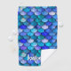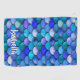 Ocean blue and nautical theme. Blue, turquoise and purple mermaid scale pattern. Template for a name, white letters.
