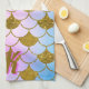 Mermaid Scale Pattern Purple Gold Glitter Initial Tea Towel