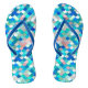 Flip-flops in a pattern of fantasy mermaid scales, in sea glass-inspired colours of aqua, shell pink, turquoise, seafoam green, and cobalt blue