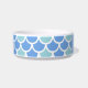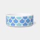Treat your cat to this personalised pet bowl featuring a close-up view of ocean blue and green mermaid/ fish scales. You can customise the text, including font colour and style. Shown is the name Kitty in simple white lettering. See more pet gifts at https://www.zazzle.com/Heard_/pet