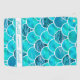 Aquamarine, mint green and turquoise coloured girly mermaid scale pattern. The scales are watercolor painted and some filled with sea water as contrast. A white and light blue frame and Your name (x3) The name is wirtten twice with a hand lettered style scipt and once with block letter. Perfect for a summer day!