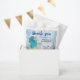 Sea themed birthday "thank you" favour bags feature a watercolor mermaid lounging in the ocean with some fish friends, enjoying the coral reef sights and some cupcakes, with two lines of text that can be personalised. Art by KL Stock