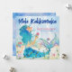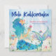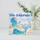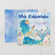 Whimsical, "Under the Sea" theme Christmas card features a watercolor mermaid lounging in the ocean with some fish friends, enjoying the coral reef sights and a tropical drink with the Hawaiian Christmas greeting "Mele Kalikimaka" in navy blue brushstroke lettering. The second greeting (shown here with Happy Holidays) and the name(s) can be personalized. Art by KL Stock
