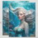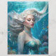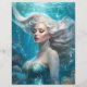 A beautiful mermaid with cascading silver hair in a turquoise ocean.