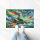 Mermaid Sits on Rock Surrounded by Whimsical 36x24 Doormat