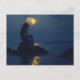 Mermaid sitting on a rock at night postcard