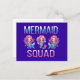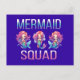 Mermaid postcard showing Trio of mermaids with rainbow coloured hair and full tail showing,