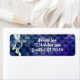 This address label design features a beautiful mermaid tail in light blue set against a background of sparkling mermaid scales in shades of blue and purple.