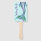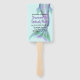 Unique water themed party invitation done on a wood handled fan. A big colourful mermaid's tail, on a light blue background sets the theme for this fun fan style party invitation. Personalise the black and purple text for your event.