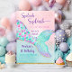 This adorable invitation features a colourful mermaid tail with faux gold glitter embellishments.