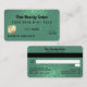 This is the perfect gift certificate business card for a trendy, stylish, girly, and modern businesswoman. This design features a glamourous and chic faux printed diagonal sparkly mermaid teal glitter and mermaid green ombre gradient design in the cute, unique, and clever style of a credit card. It's the perfect way to allow your customers to buy a gift for their family and friends and at the same time promote your business.