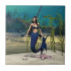 3D digital render of a cute mermaid on blue fantasy ocean background