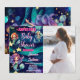 This beautiful Mermaid themed Photo Baby Shower invitation is the perfect way to announce your upcoming bundle of joy. The vibrant watercolor design features a majestic Under the Sea adventure in these Galaxy Ocean Waters with specs of Gold, Teal, Purple and more swirling around. Three gorgeous Mermaids are swimming on the front and one will pop up again on the back. You can add your own photo of the mum to be to personalise the invitation even further along with all the wonderful details of your upcoming event.