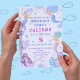 Make a splash with this magical Mermaid 5th Birthday Invitation! Featuring pastel watercolor illustrations of mermaids, coral, and sea stars, this under-the-sea themed design is perfect for your little girl's special day. The dreamy palette of purples, blues, and pinks adds a whimsical touch, while elegant fonts highlight your child's name and birthday details. Personalise it easily with your party info. Ideal for a summer pool party, beach bash, or mermaid-themed celebration!