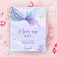 "A Sweet little Mermaid is on the way", "Under the Sea" themed girl baby shower party. Watercolor pastel purple and blue hues, featuring playful mermaid tail, clown fish, and corals.