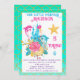 Mermaid Under the Sea Turquoise and Gold Birthday Invitation