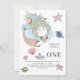 A watercolor and illustrated mermaid themed 1st birthday party invitation. Mermaid and crab with creatures of the sea surrounding her. A cute artistic whimsical style invite.