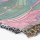 A quality printed throw has its advantages. This is a much finer weave throw than its loopier cousins, and though lighter, it is worth the investment for custom room accessorizing. The back is much prettier than the typical brown, and the fringe on the long sides very vivid, the selvage nicely done. Before photographing, I washed the throw in cold water, delicate, with a thicker woven throw the same size. On tumble dry low, this throw was dry in half the time as the other. This is a very practical quality if you use throws for furniture covers or to wrap up in frequently. The sleekness of the fabric makes it a great layer for accenting or protecting without the feeling of sitting on too much stuff. Perfect for napping or when you feel a light chill coming on. The color printing is beautiful and on this fabric, matched the design and color of my Photoshop image. This is an advantage for blending room fabrics and colors. The fringe on the short sides prints the colors from the design image and therefore varies from the side fringe. I streaked a white fractal line through the plaid pattern to give the illusion of weaving. This printed as crisp as an illusory thread, and put some white in the short side fringe, showing another advantage of print vs loomed- for artistic purposes, line lines, detail, and color integrity can be planned and preserved. My loomed throws have color limitations and more of a needlepoint texture. Print throws reproduce an exact image. The throw felt a little stiff straight out of the package, but this went away in the first delicate wash. Of course I searched the wash water for ink or bleeding and there was none.