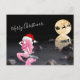 This Merry Christmas holiday greeting card features a beautiful mermaid in pink wearing a Santa hat. She is sitting on a rock with a full moon and silhouette of Santa, his sleigh and reindeer in the background. Greeting ~ Wishing You a Magical Holiday Season. Some graphics by HandMek.etsy.com and artwork©delightful-doodles.com
