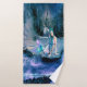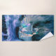 Mermaid with turquoise hair on a rock with a castle behind her.That has a waterfall leading to the ocean sea floor.