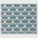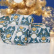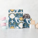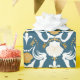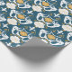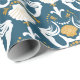 Modelled on old damask wallpaper this pattern features illustrations of mermaids and seashells in white and mustard gold set against a dark teal blue background. This wrapping paper is perfect for wrapping up gifts with a nautical theme or for wrapping up a present to your favourite fan of mermaids.