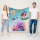 MERMAID'S, FISH, WAVES & BEAUTIFUL COLORS FLEECE BLANKET FOR GIRLS WITH PERSONALIZED NAME!
