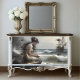 This tender Decoupage_Boutique design features a golden-scaled mermaid kneeling on rocky shores, offering a mysterious treasure to the sea as a tall ship sails in the distance. Her quiet reverence, soft lighting, and detailed fin evoke themes of memory, love, and the ancient bond between ocean and spirit. Perfect for elevating vintage vanities, heirloom chests, or dreamlike wall panels. A stunning choice for lovers of fantasy, folklore, and meaningful coastal decor.