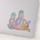 Contour sticker with a cute watercolor illustration. 2 mermaids swimming under the sea among the flora. A happy jellyfish floats along too. Darling and delightful illustration.