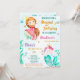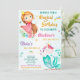 This royal and under the sea birthday invitation features happy little mermicorn, beautiful little princess, some flowers and rainbows around.