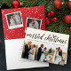 The inside top of the card features 2 instant photos on a festive red background with white snow dots pattern. The inside bottom of the card has an editable holiday greeting and text template of the couple's names and wedding details. One last full bleed photo covers the back cover of the card. This unique card features 6 of your favorite photos in total.