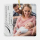 Merrier as Grandparents photo ornament with vertical photo, elegant calligraphy and delicate white snowflakes on a silver grey border. The photo template is ready for you to add your photo, the year and your custom text on the back. With the exception of the handwritten text used for Merrier and Grandparents, all of the wording is fully editable to suit first christmas as grandparents or you can delete or edit the text for subsequent years. If you have any problems with placement, try cropping your pic to a portrait format and re-uploading