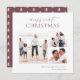 Share cheer with these colourful and modern holiday cards featuring 3 of your favourite photos (one vertical and two small horizontal or landscape orientated). "Merriest Christmas" appears at the top in hand lettered calligraphy and classic serif lettering. Personalise with your family name and the year at the lower right.