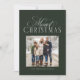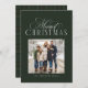 This elegant Christmas photo card features a stylish Merriest Christmas type treatment and a large square photo on the rich hunter green front. The back of this simple holiday photo card features a collage of three photos on a coordinating plaid. This green card works well as a family Christmas card, as a couple's newlywed photo Christmas card and more. Find more colors and styles in the collection by Lea Delaveris Design. Also available as a digital Christmas card download to send digitally or print on your own.