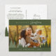 Merriest Christmas. Celebrate the season with this family photo postcard, forest sage green theme, outdoor pine trees layover. It is fully customisable and personalised with your own greeting messages. Please add your return address for easy mailing. It is simple, easy, yet modern minimalist and festive. This is the perfect postcard for sending your holiday wishes. Layover Christmas trees.