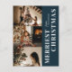 Merriest Christmas Modern Blue Script 3 Photo Holiday Postcard