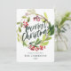 Merriest Christmas watercolor floral Holiday card. Beautiful watercolour painted foliage and modern script text. Part of a collection.