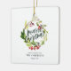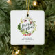 Merriest Christmas watercolor floral, red berry tree ornament. Beautiful watercolour painted foliage and modern script text featuing your personalised message - family name, year etc. A great festive addition to your home this Holiday Season. Part of a collection.