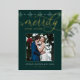 Elegant holiday photo cards for newlyweds feature a favourite square wedding photo on a rich hunter green background, with "Merrily Ever After" in luxe gold foil calligraphy script. Personalise with your names or custom greeting beneath. A tonal snowflake border completes the look. Perfect for sharing a wedding photo for your first married Christmas.