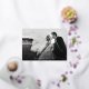 Chic holiday photo card for newlyweds features your favourite horizontal or landscape orientated wedding photo with "merrily ever after" overlaid in gold foil script lettering. Personalise with your names and the year beneath, and add a personal message to the back, along with two additional photos.