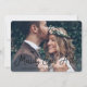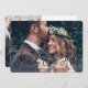 Send joyful holiday wishes as a new Mr. & Mrs! Celebrate your first married Christmas and share two of your favourite wedding pictures with a stylish custom photo "Merrily Ever After" holiday card. All text on this template is simple to personalise to include any wording, such as Merry and Married, Merrily Married, Happy Holidays, Seasons Greetings, New Year Cheers etc. Modify or delete message on back to use as wedding thank you and Christmas card combined. (IMAGE PLACEMENT TIP: An easy way to centre a picture exactly how you want is to crop it before uploading to the Zazzle website.) The modern minimalist black and white design features trendy handwritten style script typography overlay and 2 photos of your choice. Family and friends will love displaying this elegant customised card. Cheers to the newlyweds!